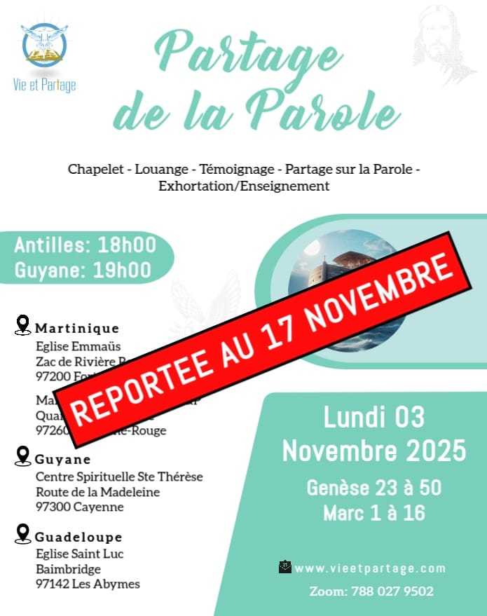 La Communauté Vie et Partage vous invite à un temps de partage de la Parole :